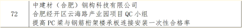 本次競(jìng)賽旨在深入貫徹落實(shí)《質(zhì)量強(qiáng)國(guó)建設(shè)綱要》精神,引導(dǎo)鋼木建筑行業(yè)企業(yè)科學(xué)運(yùn)用先進(jìn)質(zhì)量管理方法,全面提升工程質(zhì)量管理水平。全國(guó)各地眾多鋼木建筑企業(yè)踴躍參賽,競(jìng)爭(zhēng)異常激烈。公司高度重視此次競(jìng)賽,精心組織內(nèi)部質(zhì)量管理小組進(jìn)行成果申報(bào)。最終,公司多個(gè)質(zhì)量管理小組的項(xiàng)目成果在一眾參賽作品中成功突圍。其中,合肥經(jīng)開區(qū)云海路產(chǎn)業(yè)園項(xiàng)目QC小組的“提高 PC 梁與鋼筋桁架樓承板連接安裝一次性合格率”課題榮獲二等獎(jiǎng)。該成果聚焦鋼桁梁底部作業(yè)難題,通過技術(shù)創(chuàng)新,大幅提高了施工效率與安全性,為業(yè)內(nèi)同類工程提供了極具價(jià)值的實(shí)踐范例。此外,中建材鋼構(gòu)公司還有6項(xiàng)成果榮獲三等獎(jiǎng),獲獎(jiǎng)成果覆蓋鋼結(jié)構(gòu)制造、安裝以及施工工藝優(yōu)化等多個(gè)領(lǐng)域,均是公司質(zhì)量管理小組在實(shí)際工程項(xiàng)目中,運(yùn)用科學(xué)方法,深耕技術(shù)創(chuàng)新與質(zhì)量改進(jìn)工作的結(jié)晶。